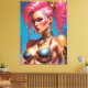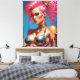 Impressão Em Tela Mulher Com Cabelo Rosa Bonito