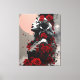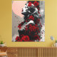 Uma mulher linda com IA rosa vermelha gerou pintura em cores mínimas de vermelho, preto, cinza e um tom de rosa.