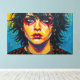Otis Porritt's digital artwork presents an arresting close-up portrait, bursting with an electrifying palette of hot pink, vivid yellow, and intense blue. The subject's face is rendered with bold, contrasting color blocks and a dynamic, pointillist-like texture, creating a modern pop art aesthetic. Piercing blue eyes hold the viewer's gaze, while a stark black streak descends from one eye, adding a poignant touch. The vibrant, almost chaotic energy of the multi-colored hair and dotted background amplifies the work's striking visual impact.