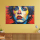 Otis Porritt's digital artwork presents an arresting close-up portrait, bursting with an electrifying palette of hot pink, vivid yellow, and intense blue. The subject's face is rendered with bold, contrasting color blocks and a dynamic, pointillist-like texture, creating a modern pop art aesthetic. Piercing blue eyes hold the viewer's gaze, while a stark black streak descends from one eye, adding a poignant touch. The vibrant, almost chaotic energy of the multi-colored hair and dotted background amplifies the work's striking visual impact.