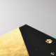 Two fantastical creatures with dragon-like scales stand amid swirling mist. Their cat-like features add a whimsical touch, set against a dramatic backdrop of gold and black rays.