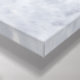 Neve branca fresca e flocos de neve. O início da estação de primavera. Texto Feliz Natal e Feliz ano novo em alguns dos produtos. Presentes, impressões e t-shirts por diversão e bom humor