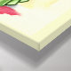 Arte de canvas com uma pintura de aquarela branca. Uma criança de pijama e seu gatinho de estimação olhando para fora da janela na véspera de Natal. Papai Noel e sua rena voando através do céu noturno em forma de silhueta com uma grande lua de cheio iluminando seu caminho.