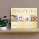 Crie sua própria impressão de tela personalizada para os avós especiais. O texto diz "netos tornam a vida grandiosa", que enquadra uma simples colagem fotográfica, contendo suas fotografias favoritas. O modelo está pronto para você adicionar 4 fotos dos netos, que são exibidas em forma quadrada e em uma faixa. O design apresenta um fundo creme neutro no estilo antigo da safra, que se ajudará em qualquer decoração de contemporâneo a rústico. Um presente maravilhoso para avós. Navegue na nossa loja para coordenar presentes e estilos de alternativo.