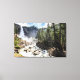 Esta foto mostra o final do inverno em Nevada Falls está em cheio e a água treme do penhasco e se levanta novamente no rio mercado enquanto passa rochas e árvores.
