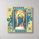 Lindo imagem de Nossa Senhora Ajuda dos Cristãos com o Bebê Jesus Aqua e Dourado Fundo rolando e impressão floral