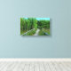 Der Weg zum Strand mit blauem Himmel, grünen Pflanzen und einem Weg aus Holz