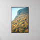 Uma fotografia de Cannon Mountain no outono. As folhas das árvores mudaram de verde para tons de laranja e amarelo. Estas cores cobriram a montanha, chegando perto do topo. O perfil da montanha são os restos da pedra granítica onde costumava estar uma face proeminente. Este dia de outono tem um céu claro e azul como fundo da cena. Imagem Copyright ©2024 Kimberly J Tilley. zazzle.com/store/developingnature