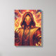 Uma figura misteriosa encapuzada em matizes ornamentados, ferozes e vestindo gestos de uma máscara de ouro impressionante em meio a um turbilhão de cartas de jogar brilhantes e símbolos místicos. As chamas e a energia radiante rodopiam-no, enfatizando o seu comando sobre as forças da cana e o elemento do acaso. Este mestre enigmático das ilusões ou do destino evoca um sentido de magia poderosa e de conhecimento oculto, convidando os espectadores para um mundo onde o destino e a artimanha se entrelaçam.