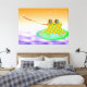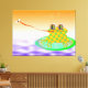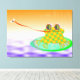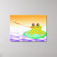 Um sapo prestes a comer uma mosca. Imagem digital.