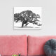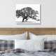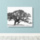 Uma dramática fotografia a preto e branco de um belo carvalho que se espalha.