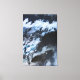 Ondas dinâmicas caem contra um céu escuro, criando um sentido de movimento e energia. A mistura giratória de blues, brancos e cinzentos evoca uma paisagem sazonal tumultuosa.