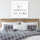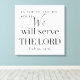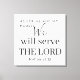 "Mas, quanto a mim e à minha casa, serviremos o Senhor", diz Joshua 24:15 na Escritura de Bíblia para ficar em sua casa. Faz um presente ou presente de casamento para famílias cristãs. Uma tipografia negra simples e uma escrita moderna.