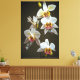 Composição vibrante mostrando orquídeas de Dendrobium em flor de cheio, com suas delicadas pétalas e cores vivas. O fundo macio melhora a beleza exótica e a graça natural dessas flores tropicais.