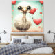 Um adorável avestruz e corações.