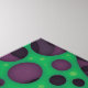 Uma matriz de círculos roxos de vários tamanhos sobrepõe um fundo verde vibrante, criando um padrão visualmente impressionante. As formas circulares têm tons variados, adicionando profundidade e complexidade ao design. Ilustração de design abstrato trippy de buracos de slime roxos e verdes. Tags: abstrato, pontos, geométrico, louco, verde, roxo, alucinógeno, buracos, psicodélico, lava, trippy, trypophobia