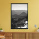 Uma fotografia de paisagem a preto e branco de colinas rolantes e montanhas até onde o olho pudesse ver. Linhas de árvores aqui e ali. E algumas manchas de neve ainda permanecem no início do verão. Imagem Copyright ©2023 Kimberly J Tilley. www.zazzle.com/store/developingnature