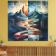 Impressão Em Tela Paisagem de Abstrato com tom duplo com rio e monta