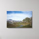 impressão de paisagem canvas de uma pequena aldeia com uma estrada sinuosa em direção a ela entre as montanhas do Parque Nacional de Jotunheimen, na Noruega.