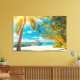 Esta foto mostra belas palmeiras contra o céu durante um pôr do sol tropical.