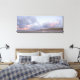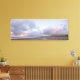 Panorama formata impressão de paisagem canvas com nuvens coloridas sobre dunas, praia e Mar do Norte durante um pôr do sol na praia de Scheveningen, em Haia, na costa dos Países Baixos.