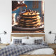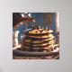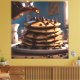 Uma pilha de panquecas serviu com pedaços de chocolate e xarope.