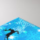 Canvas de arte de Natal com uma silhueta preta de Papais noeis cavalgando em seu trenó sendo puxado por sua rena voando pelo céu. Acredite que está escrito em uma fonte de script de tendência. O fundo é um design de floco de neve gelado azul gelado.