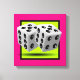Ilustração de um par de dados brancos com pontos pretos. O fundo é criado com algumas cores nervosas psíquicas ranhosas em verde limão e cor rosa fuschia.