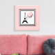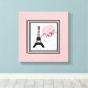 Ilustração Paris com Torre Eiffel e decoração cardíaca em quadrados brancos e pretos em fundo rosa