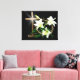 Coroa de espinhos com lírios de Páscoa e cruz de madeira.