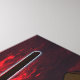 Uma representação alegórica da Passover. Com um céu vermelho ao pôr do sol a prescrever a tragédia que em breve se abateria sobre os egípcios, o braço de Moshe guarda quase o seu funcionarios das pirâmides de trás, prometendo que o êxodo ocorrerá naquela noite. Personalize adicionando seu próprio texto. As listras azuis e brancas da manga de Moshe evocam o manto prisional dos detidos nos campos de concentração do Holocausto.