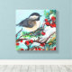 Impressão Em Tela Pássaro Chickadee Com Berries Na Ramificação
