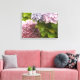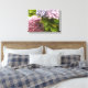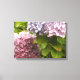 Bela captura de flores rosa e mauve hydrangea aninhadas entre sua folhagem verde.