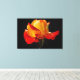Fotografia vibrante, cor de laranja-rosa, em forte contraste com um cenário preto dramático.