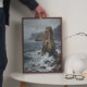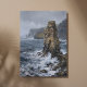 Você consegue sentir o sal no ar e ouvir o rugido das ondas? Esta peça o transporta para um promontório escondido coberto de grama no Condado de Clare, com vista para uma singular rocha de arenito desgastada pelo tempo que enfrentou o Atlântico por eras. O foco está naquele borrifo branco agitado na base e nas camadas antigas e fraturadas da rocha – um momento de profunda solidão onde a terra encontra o mar selvagem e inquieto.