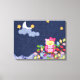 Esta canvas apresenta uma coruja adorável e sonolenta numa árvore à noite, como um impressão de bordados.