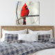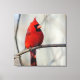Cardeal de Norte vermelho-claro apresentado no impressão colorido da natureza. Telas de tela de longa duração acrescentam uma vista de natureza divertida ao decoro doméstico.