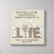 Little Boy olha para a palavra "LIFE" de diferentes perspectivas para ilustrar a citação de David A. Carrizales. Uma árvore pequena representa a letra "I" em "LIFE" ©Little Boy, Big Dreams, LLC e David A. Carrizales e trabalho de arte de © Christie Black of Creations from Heart.