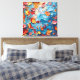 The composition balances chaos and elegance. Each petal-like form appears spontaneous, yet together they form a harmonious rhythm that guides the eye across the artwork. The contrast between cool blues and warm floral tones creates energy and visual depth, evoking feelings of movement, freedom, and natural beauty interpreted through a modern abstract lens.