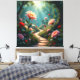 Ein zauberhafter Gartenweg, gesäumt von prachtvollen, taufrischen Rosen in Rot, Gelb, Rosa und Violett, die im goldenen Licht der aufgehenden Sonne leuchten. Diese Szene symbolisiert Frieden, Schönheit und die Magie der Natur – ein Ort zum Träumen und Verweilen.