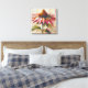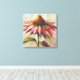 Uma exibição vibrante de pinceladas captura uma flor de cone florescente com pétalas cor-de-rosa e folhas verdes, colocada sobre um fundo texturizado