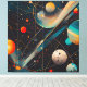 Impressão Em Tela Planetas e órbitas Espaciais - Retrofuturística