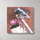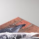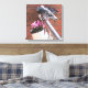 Esta linda tela envolta apresenta uma fotografia tirada na minha varanda de um par de pombos sentados no corrimão da varanda acima de um colorido vaso suspenso de Saxifraga vermelha.