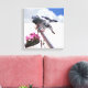Esta canvas maravilhosa apresenta uma fotografia tirada na minha sacada de um par de pombos sentados no caminho da sacada sobre um pote pendurado colorido de Saxifrage vermelho.