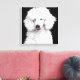 Um adorável poodle branco que faz alguém sorrir nesta maravilhosa tela impressa.