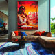 Capturar a elegância de uma noite tropical com esta ousada arte de pop com uma mulher glamourosa que desfruta de vinho ao pôr do sol. Com cores vibrantes e estilo retrorinspirado, essa trabalho de arte exude sofisticação e encanto tropical. Perfeito para fãs de pop, amantes de moda, e aqueles que buscam tendências, decoração colorida para iluminar seu espaço.