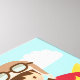 Para cima, para fora, para dentro dos céus, para uma aventura excitante! Decorar um quarto ou berçário de meninos com esta peça central colorida e divertida que apresenta um menino bonitinho em roupas de aviador de óculos grandes e chapéu. O menino está acenando a mão e sorrindo alegremente enquanto voa um pequeno avião vermelho e amarelo entre as nuvens. Para crianças que amam aviões e coisas relacionadas à aviação. Personalize com o nome da criança no lado do avião.