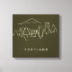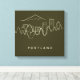Esta design apresenta um desenho desenhado manualmente do horizonte de Portland sobre fundo verde.
