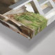 Uma ponte branca e meia-lua rodeada por uma nova folhagem de primavera, num jardim asiático.