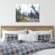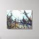 Uma fotografia de um Robin Americano empoleirado num galho de árvore. A árvore está mostrando sinais de nova vida para os meses quentes que chegaram. As folhas começam a crescer nos ramos cobertos de musgo. O fundo está mostrando cores primavera de amarelos e verdes, ascensões em um céu azul claro. Imagem Copyright ©2021 Kimberly J Tilley.